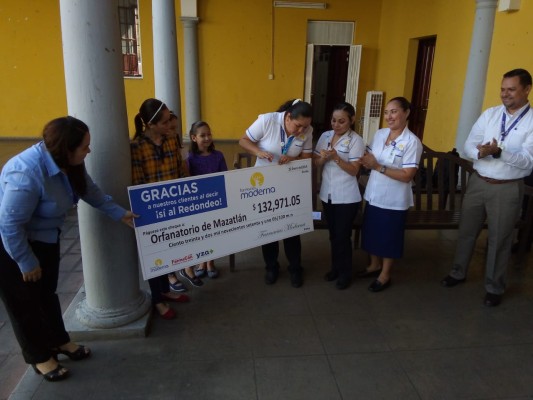 MAZATLÁN._ Grupo Farmacias Moderna y Farmacon realizó la entrega simbólica de un cheque por la cantidad de 132 mil 971 pesos en apoyo al Orfanatorio de Mazatlán I.A.P, como parte de un redondeo que se llevó a cabo de julio a diciembre del 2018 en sus sucursales.