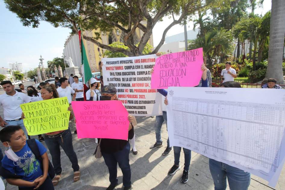 Al ritmo de “Gobierno escucha, escucha nuestra lucha”, decenas de habitantes de la sindicatura Mármol marcharon del monumento al pescador al Palacio Municipal, para demandarle al Gobierno de Mazatlán atención en un plantel educativo de esa comunidad.