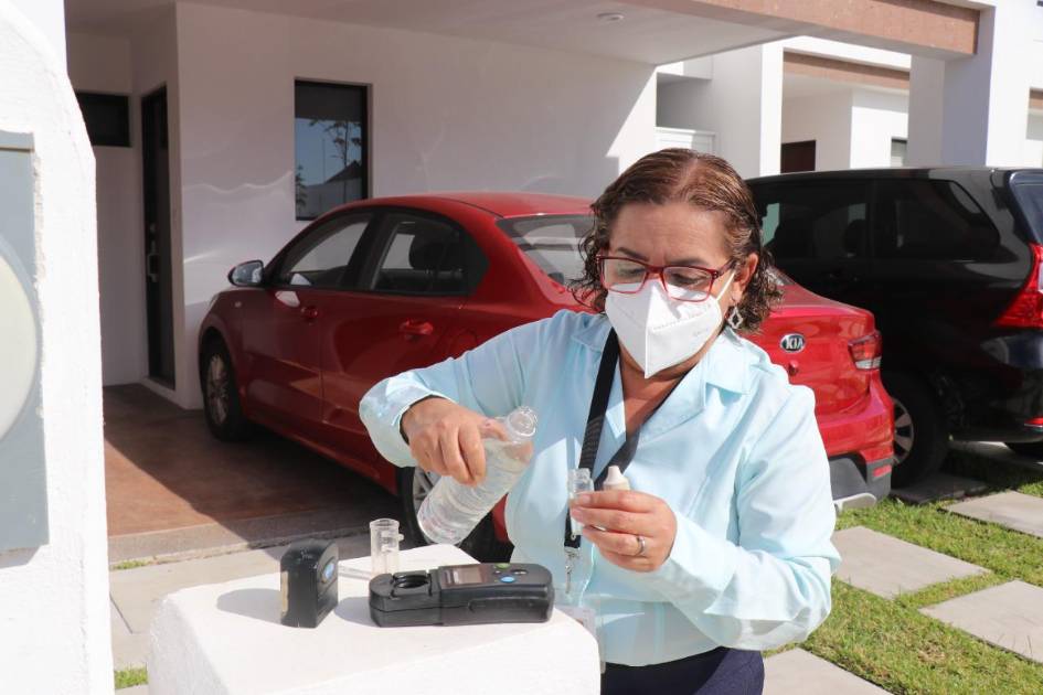El Departamento de Saneamiento, adscrito al Área de Calidad de Agua de Jumapam, sostuvo que se realizan 14 muestreos diarios, pero hoy se tomó la decisión de hacer uno en una vivienda de Mazatlán, ubicada en Cerritos, para demostrar que el agua es potable está libre de patógenos y apta para el consumo humano.