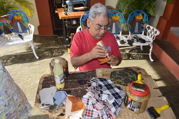 MAZATLÁN._ Sentado al pie de su terraza, pegando un trozo de tela con piel bovina, don Martín se dedica desde hace más de 15 años a la fabricación de huaraches y artículos de piel en la sindicatura de La Noria.