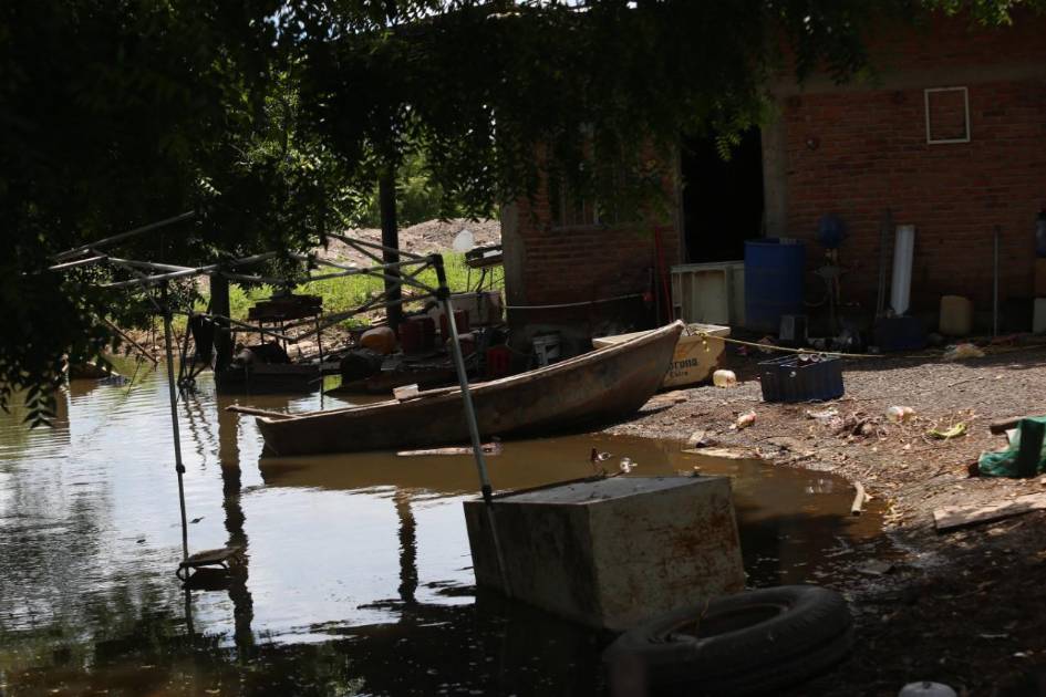 Hay tanta agua en El Pozole, que en el patio de una casa se mueven por canoa