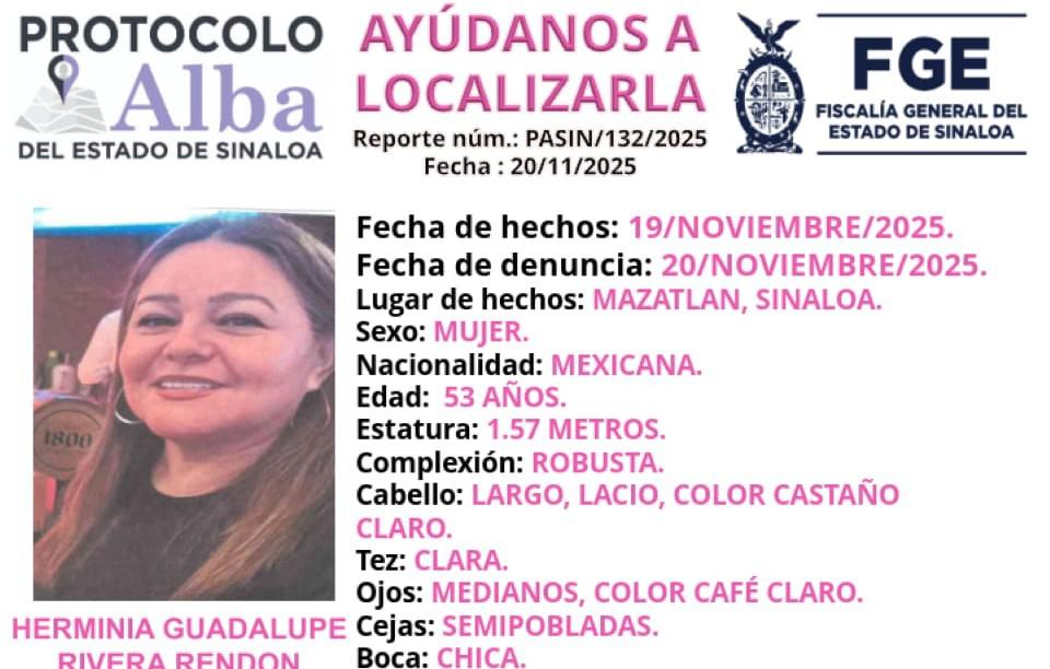 MAZATLÁN._ Herminia Guadalupe Rivera Rendón, quien fue privada de su libertad junto con otra mujer la noche del pasado miércoles cuando se encontraban en un centro comercial de la colonia Palos Prietos, es esposa de un periodista de Mazatlán.