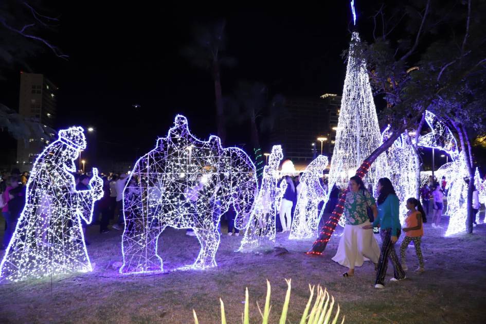 La iluminación también cuenta con figuras que representan el pesebre en el que nació el Niño Jesús en Belén y a los Reyes Magos, así como figuras de renos, entre otros, para disfrute de niños, adolescentes y adultos.