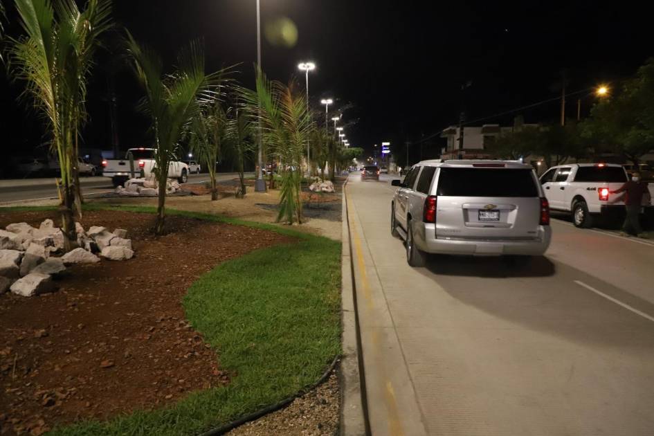 - Se le puso el alumbrado público y todo lo que es el mobiliario urbano como los bici-puertos, los botes de basura, va contener paradas de camiones y es una obra muy completa.