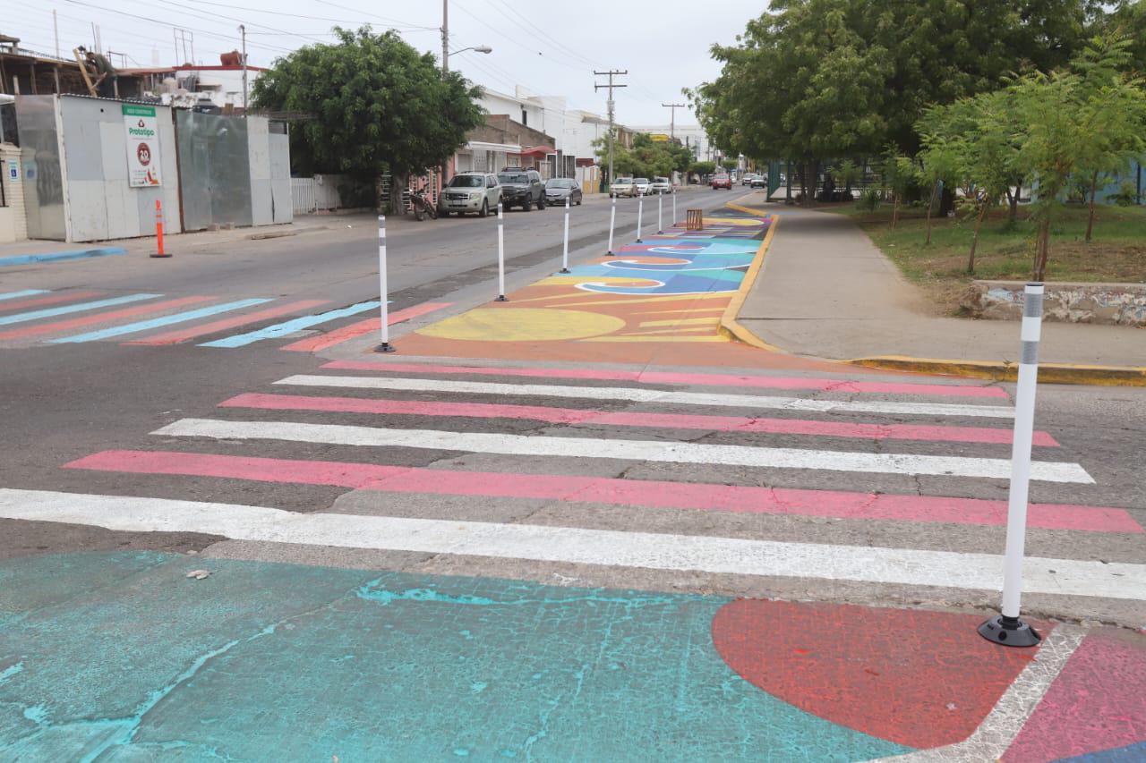 ”Otro en la Juárez, que ahí parece que no hay ni las rayas de enmedio, se necesita poner orden y en ese sentido visual, por eso es que nosotros apostamos a que con esta intervención del artista pudiera ser más visible que la sólas rayas de cebra, la obra de ‘Lesor’ que trabajó con los niños de las escuelas de alrededor para preguntarles qué era lo mazatleco y los niños lo dibujaban, entonces mucho de lo que hizo ‘Lesor’ está inspirado en lo que los niños dijeron”.