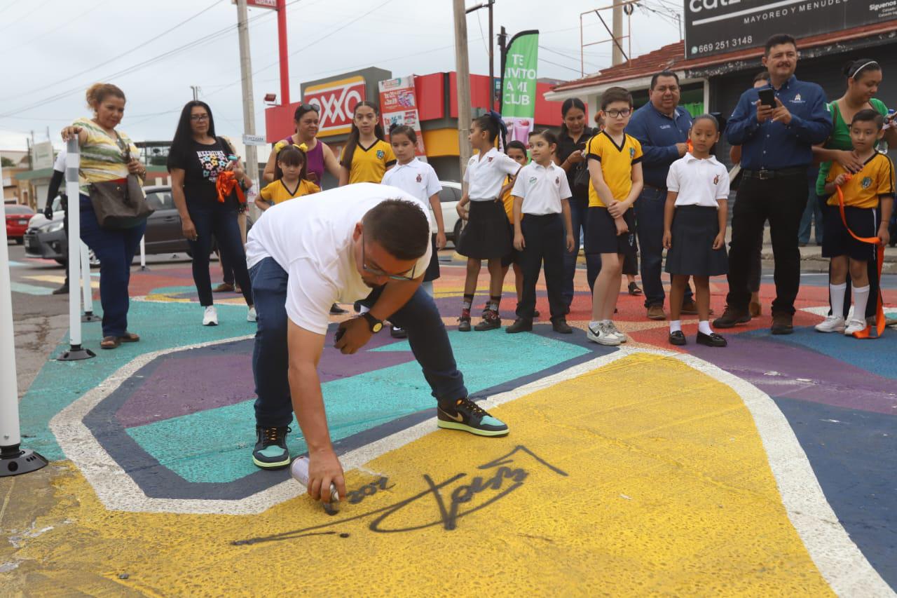 El primer crucero del proyecto “Pasos Mágicos Mazatlán” fue inaugurado la mañana de este jueves en la Avenida Juan Pablo II y las calles Anaxágoras y Newton, en el Fraccionamiento Villa Galaxia, para mejorar la seguridad a la población estudiantil y a la comunidad en general en ese punto de la ciudad.