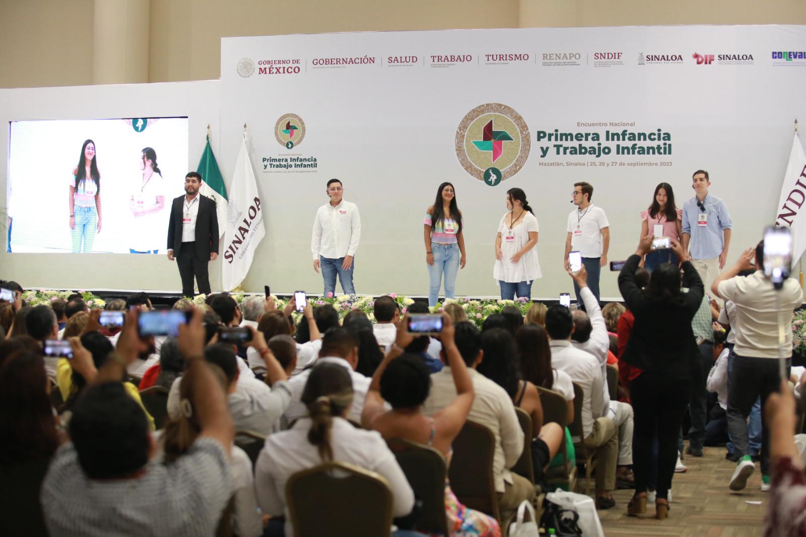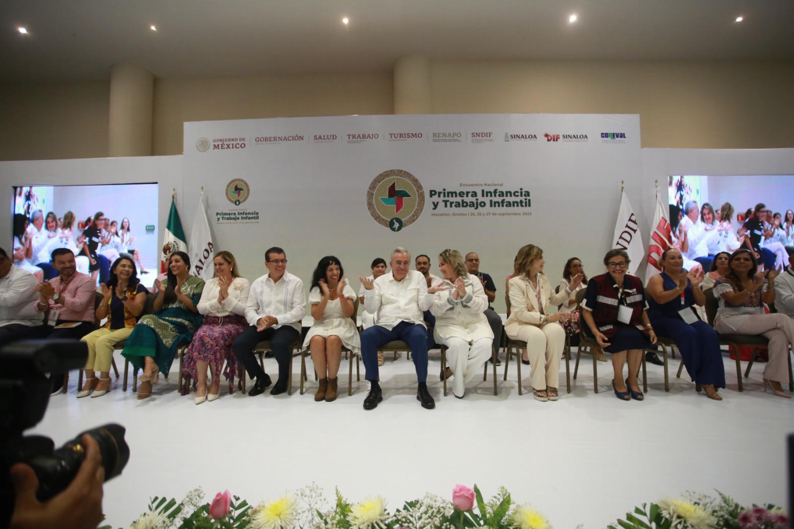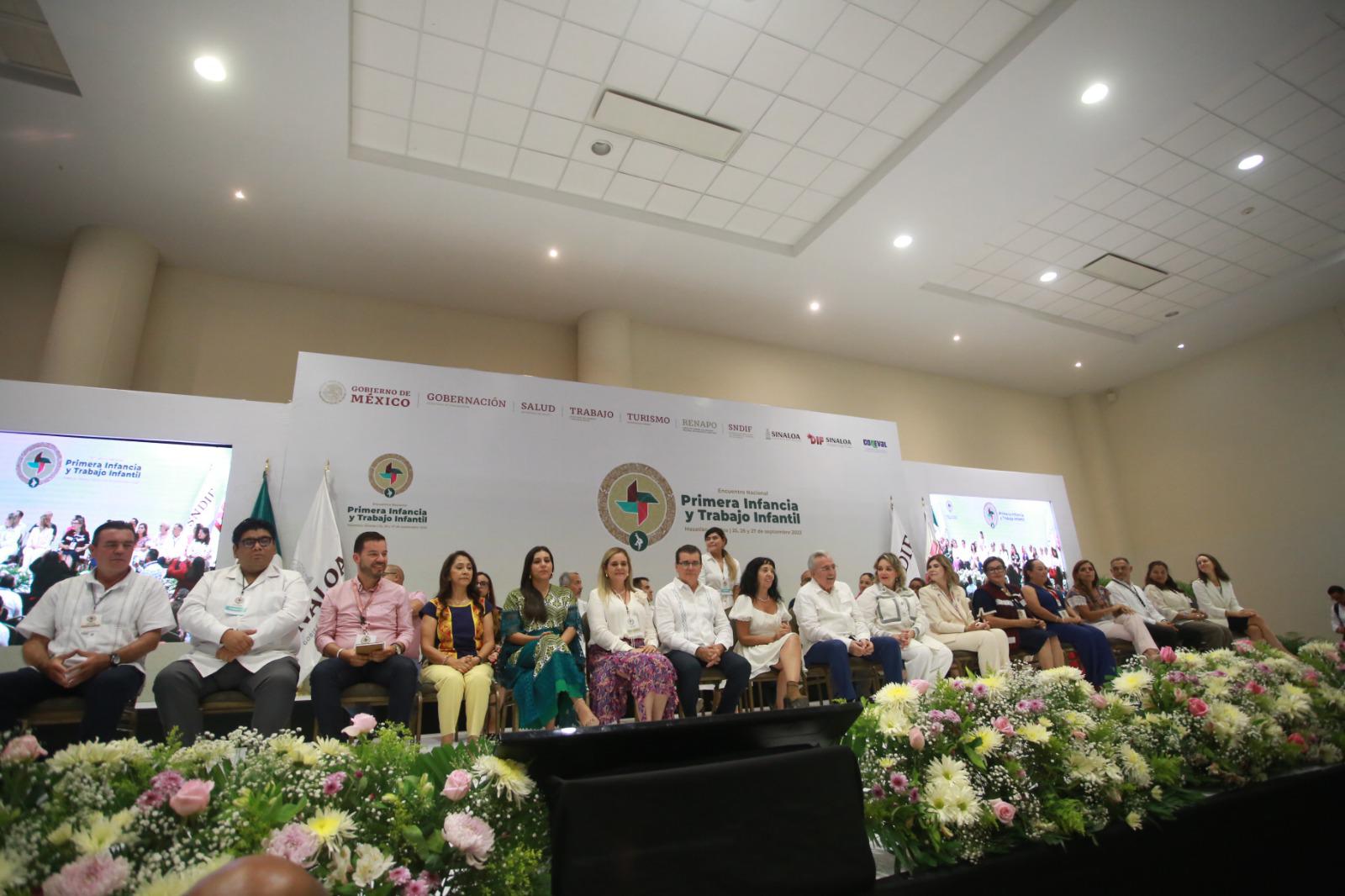 MAZATLÁN._ Autoridades de los tres niveles de Gobierno inauguraron este lunes el encuentro nacional de primera infancia y trabajo infantil que se realiza en el Centro de Convenciones de Mazatlán.
