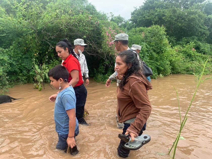 En coordinación con la Guardia Nacional, Conagua, Bomberos Veteranos Villa Unión y Protección Civil Estatal, el Gobierno municipal implementó tres células de reconocimiento para evacuar las zonas bajas de las comunidades de ambas márgenes del Río Presidio, y los pueblos de Barrón, El Walamo e Isla de la Piedra.