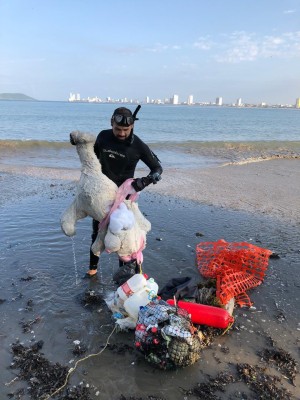 "¡Increíble! Hasta peluches grandes encuentran en el mar de Mazatlán"