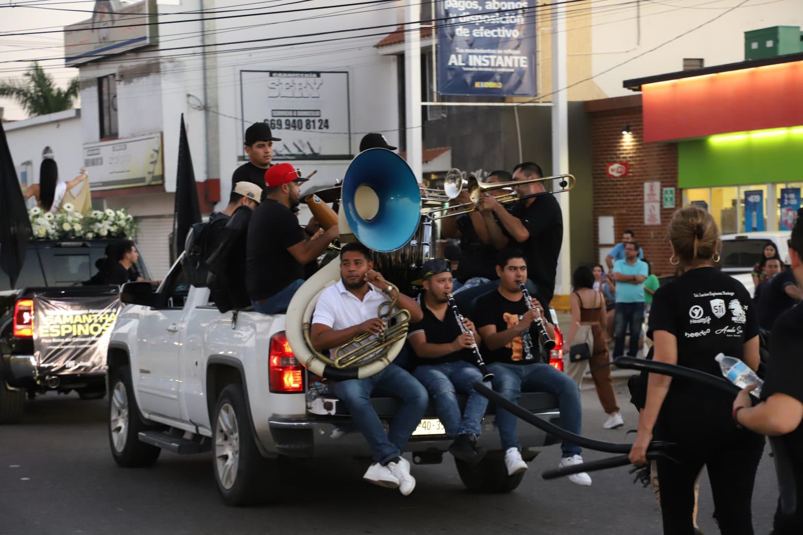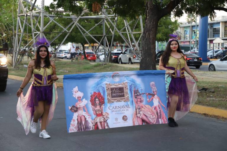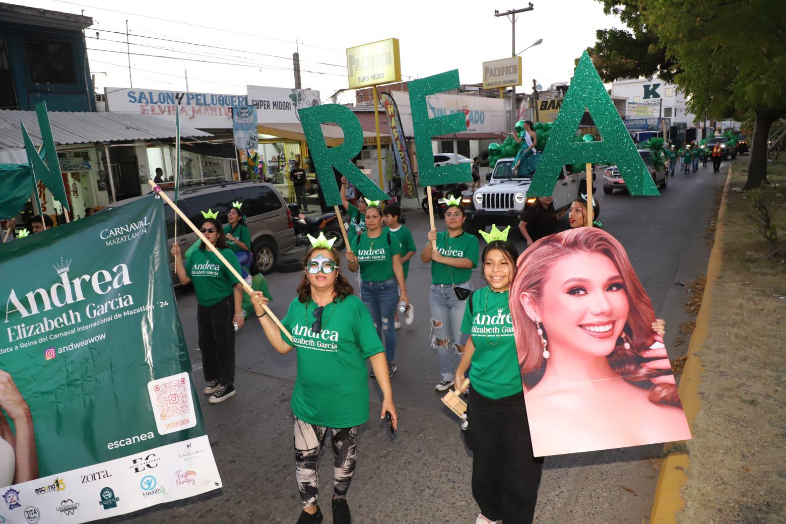 Bandas sinaloenses, comparsas y los diferentes candidatos a los reinados de la máxima fiesta y muchos simpatizantes se volcaron en las calles para sumarse a la festiva manifestación.