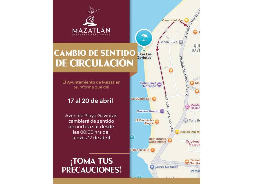 Inicia este jueves el par vial en la Zona Dorada; cambian señalética en la Camarón Sábalo y Gaviotas