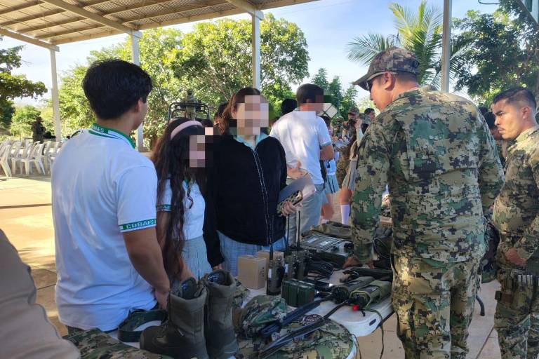 Asimismo, se colocó un stand con armamento, equipo táctico, de comunicación, equipo del ENSAR, Sanidad Naval y módulo de oferta laboral y educativa de la Secretaría de Marina Armada de México, mediante trípticos e información básica para promover las diversas carreras de la Universidad Naval; durante la convivencia con la comunidad estudiantil, se desarrollaron diversas actividades que permitieron la interacción con el personal naval.