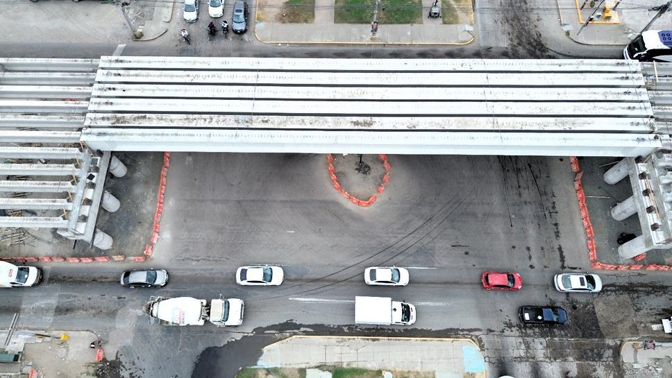De acuerdo con información proporcionada por personal de la SCT, hasta el momento se han colocado 7 de las 11 vigas de concreto que servirán como zona de rodamiento en el paso a desnivel.