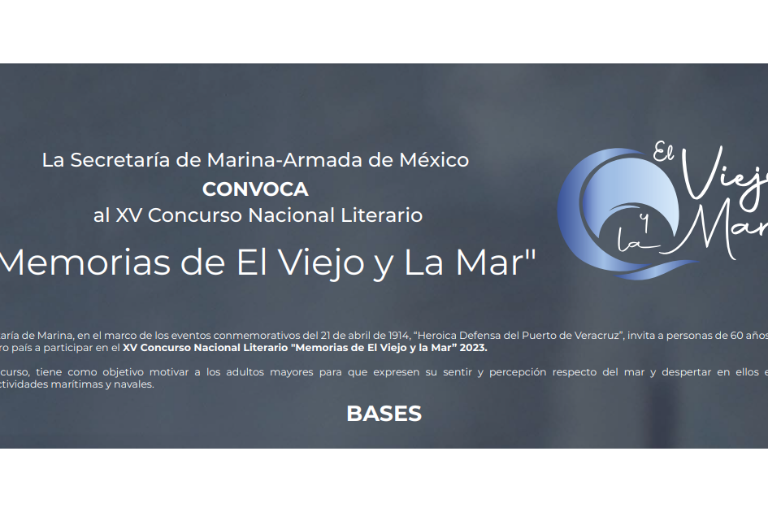 Con el objetivo de motivar a los adultos mayores para que expresen su sentir y percepción respecto del mar y despertar en ellos el interés por las actividades marítimas y navales, la Secretaría de Marina llama a participar en la edición 15 del Concurso Nacional Literario “Memorias de El Viejo y la Mar” 2023.