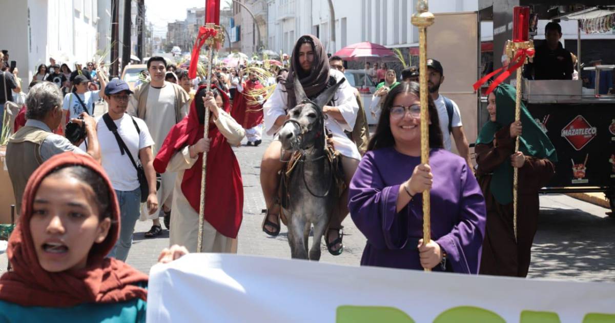 Jóvenes de Mazatlán representan la entrada triunfal de Jesús a Jerusalén