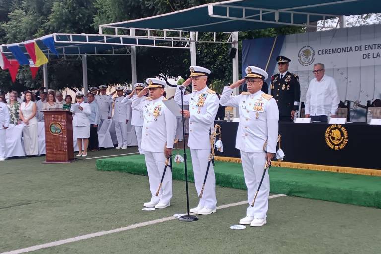 En tanto, el Almirante Francisco Escamilla Cazares, Oficial Mayor de Marina, junto al Comandante Accidental de la Cuarta Región Naval, Edy Alberto Meléndez Cedillo, fueron los encargados de realizar la toma de protesta de ley y entrega del mando al Almirante Guadalupe Juan José Bernal Méndez.