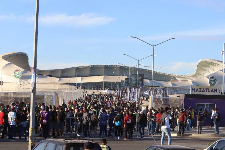 Como si se tratara de una especie de Carnaval, miles de personas acuden esta tarde al estadio de futbol El Kraken para disfrutar del partido entre Mazatlán FC y las Águilas del América.
