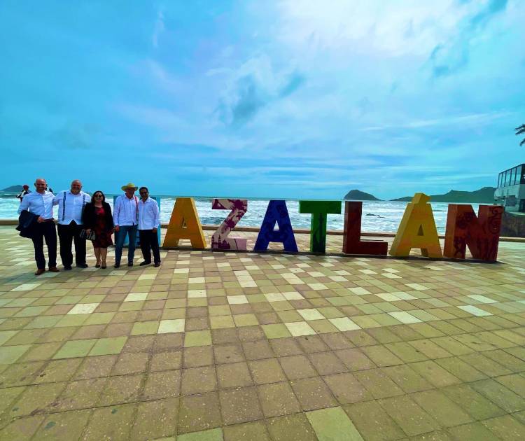 En su visita a Mazatlán, el Embajador Ken Salazar y su cuerpo diplomático se tomaron la foto del recuerdo en el parador fotográfico del malecón, a un costado de conocida discoteca.