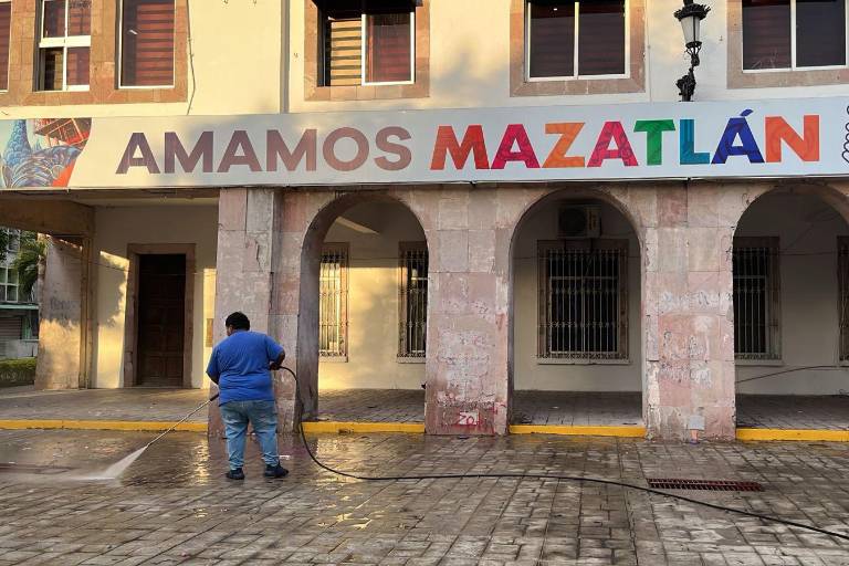Luego de las pintas, mensajes y carteles que realizaron los colectivos feministas sobre el Palacio Municipal de Mazatlán el domingo en la Marcha del 8M, este lunes trabajadores del Ayuntamiento hicieron trabajos de lavado en la fachada del edificio para retirar la pintura de las paredes.