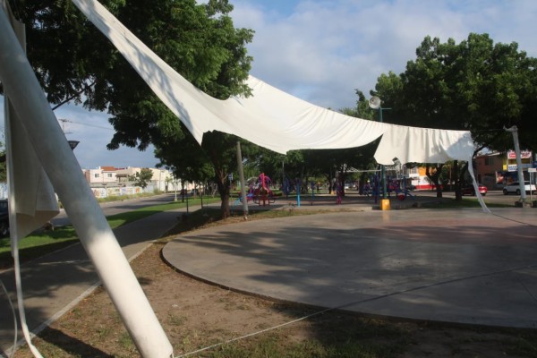 Inaugurado en su primera etapa en marzo de 2015, esta área recreativa ya se observa con deficiencias en algunos de los aparatos de los gimnasios al aire libre y en distintos juegos infantiles, pero lo que es más evidente, es la caída de sus velarias desde la tormenta tropical Narda.