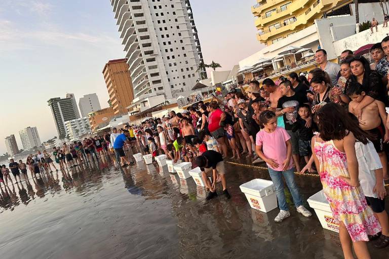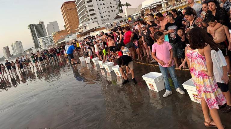 A la actividad asistieron más de 200 personas, quienes participaron y fueron testigos del momento en el que estas pequeñas crías fueron soltadas en una playa de Mazatlán, justo a la caída del atardecer.