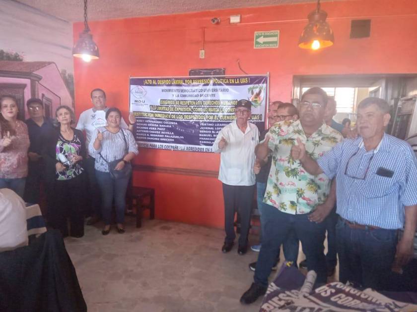 MAZATLÁN._ El Movimiento Democrático Universitario hizo un llamado al Gobierno del Estado y al Gobernador Rubén Rocha Moya para que en la negociación de apoyo para el aguinaldo a la Universidad Autónoma de Sinaloa sean reinstalados los trabajadores universitarios despedidos por represiones políticas por parte del cuenismo.