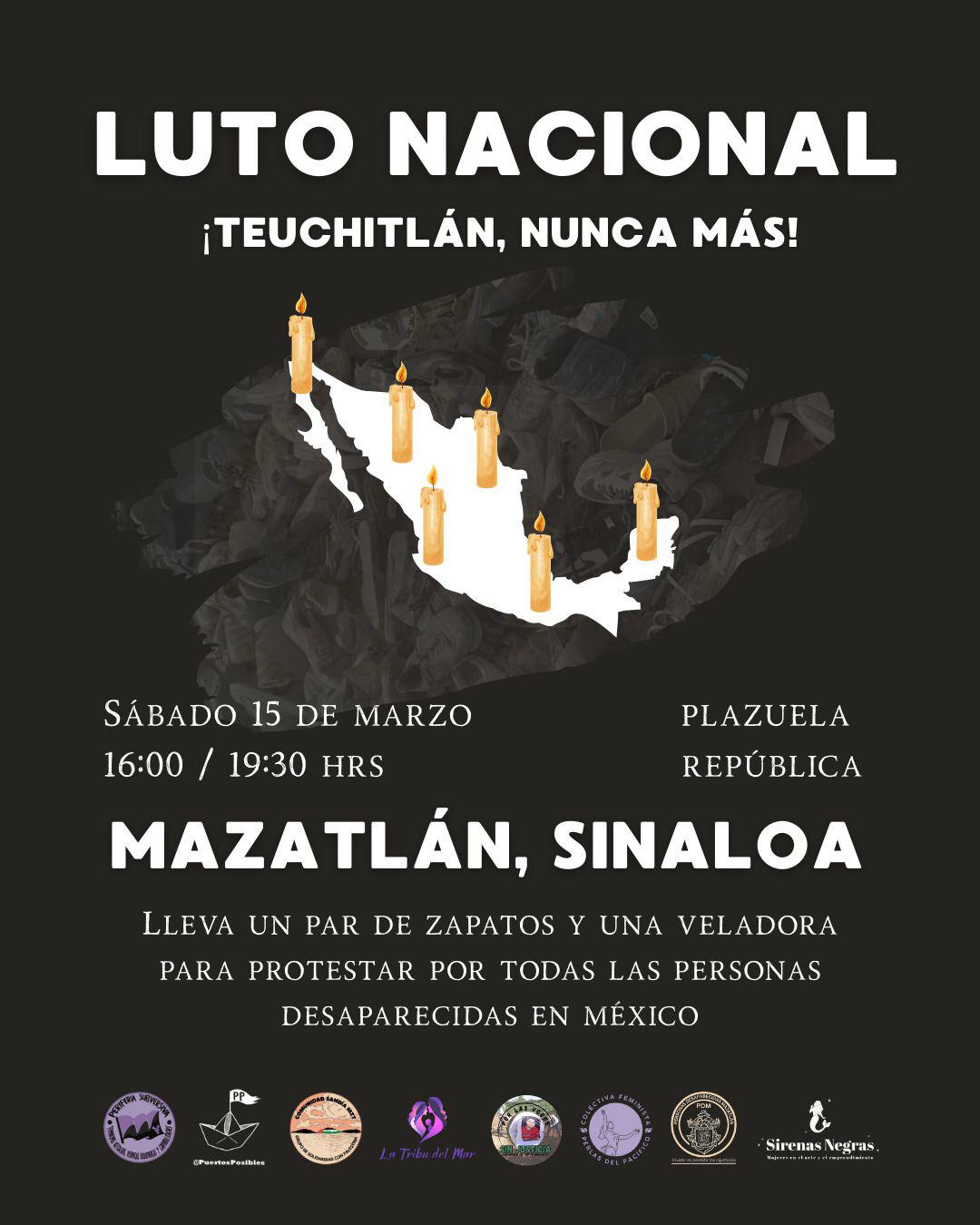 Llaman en Mazatlán a unirse a vigilia y luto nacional por hallazgo de rancho en Teuchitlán, Jalisco