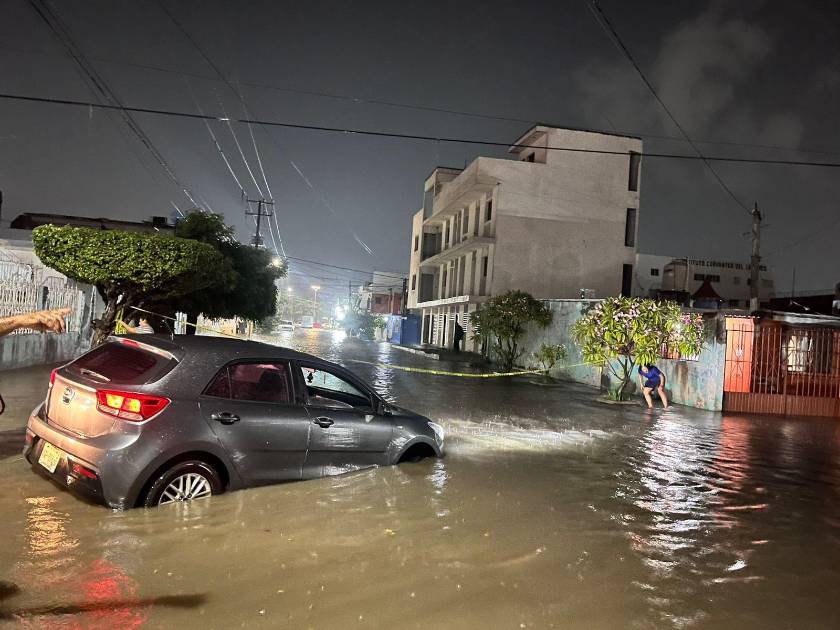 La avenida Insurgentes con dirección a Ejército Mexicano en la colonia López Mateos quedó intransitable debido al agua, misma situación en Cruz Lizárraga en la colonia Palos Prietos.