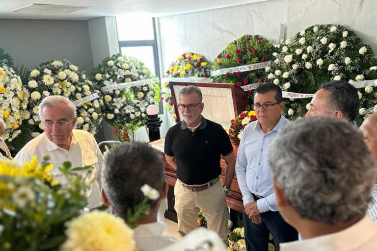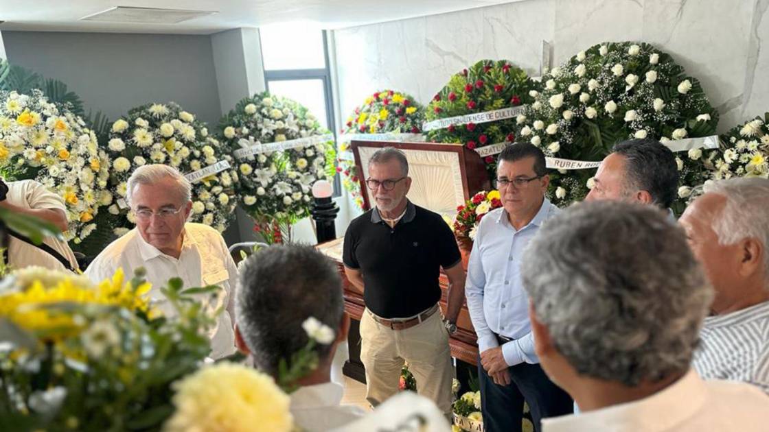 Una corona grande de flores a nombre de Rubén Rocha Moya fue colocada junto al féretro.