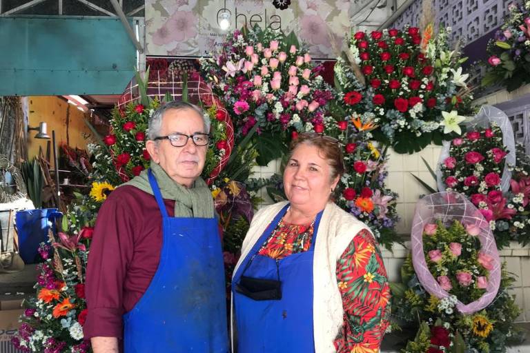 Su esposo, el señor José Benjamín Mendoza, elabora arreglos para una boda, sin embargo, menciona que este mercado es el que ha sobrevivido más con la venta de flores.