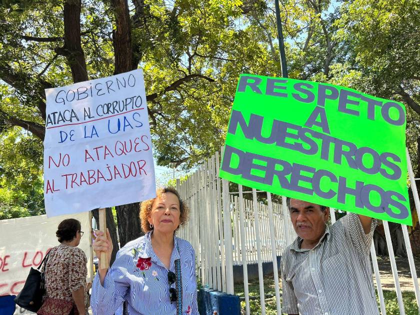 “Estamos en un plantón para exigir y ser escuchados, pero sobre todo por levantar la voz por los jubilados de la UAS, porque están queriendo dañar nuestras prestaciones laborales adquiridas a través de las conquistas sindicales a las que tenemos derecho”, comentó.