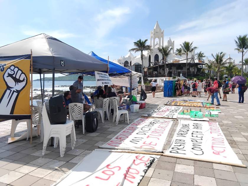 Mantendrán trabajadores jubilados plantón de protesta en Mazatlán hasta que autoridades de la UAS atiendan