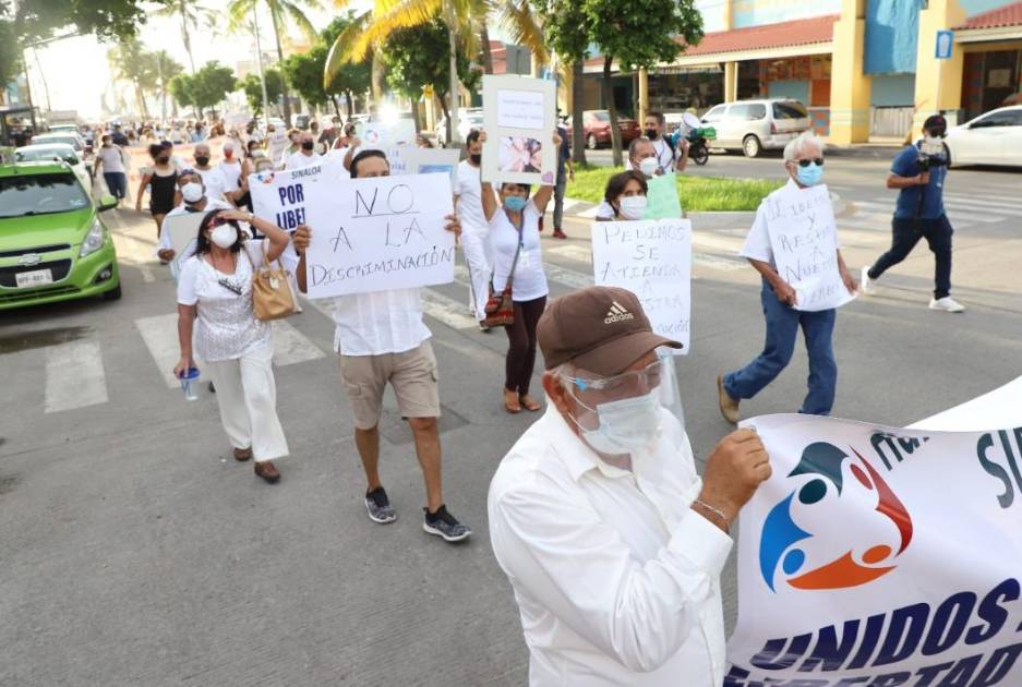 Contra la exigencia del certificado de vacunación contra el Covid-19 en los diferentes negocios y establecimientos de Mazatlán, decenas de personas marcharon este viernes y exigieron respeto a sus derechos humanos, argumentando especialmente que no han podido entrar a comprar comida ni medicamentos.
