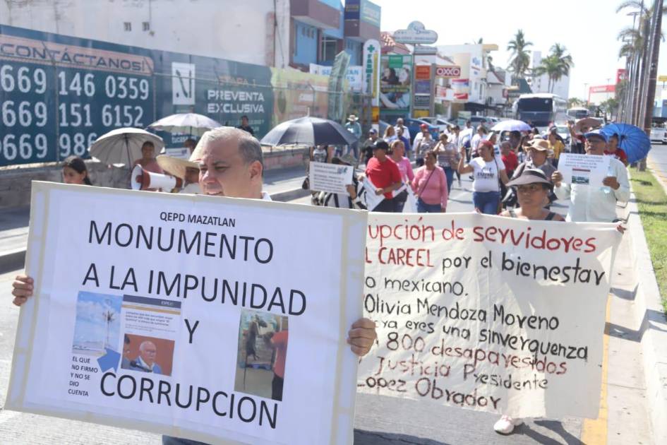 MAZATLÁN._ Decenas de personas marcharon la mañana de este domingo para manifestarse contra el Gobierno, señalando la existencia de impunidad y corrupción por parte de funcionarios públicos.