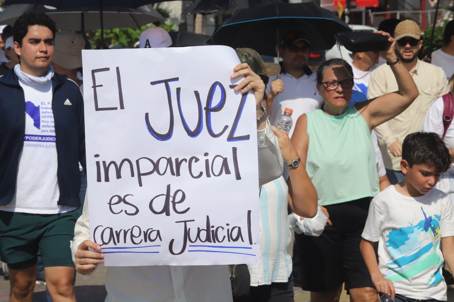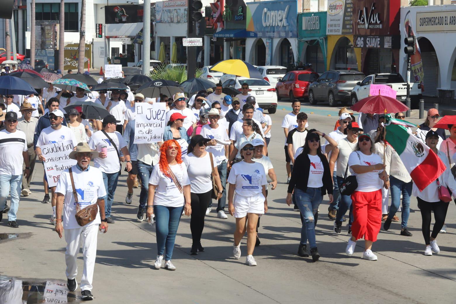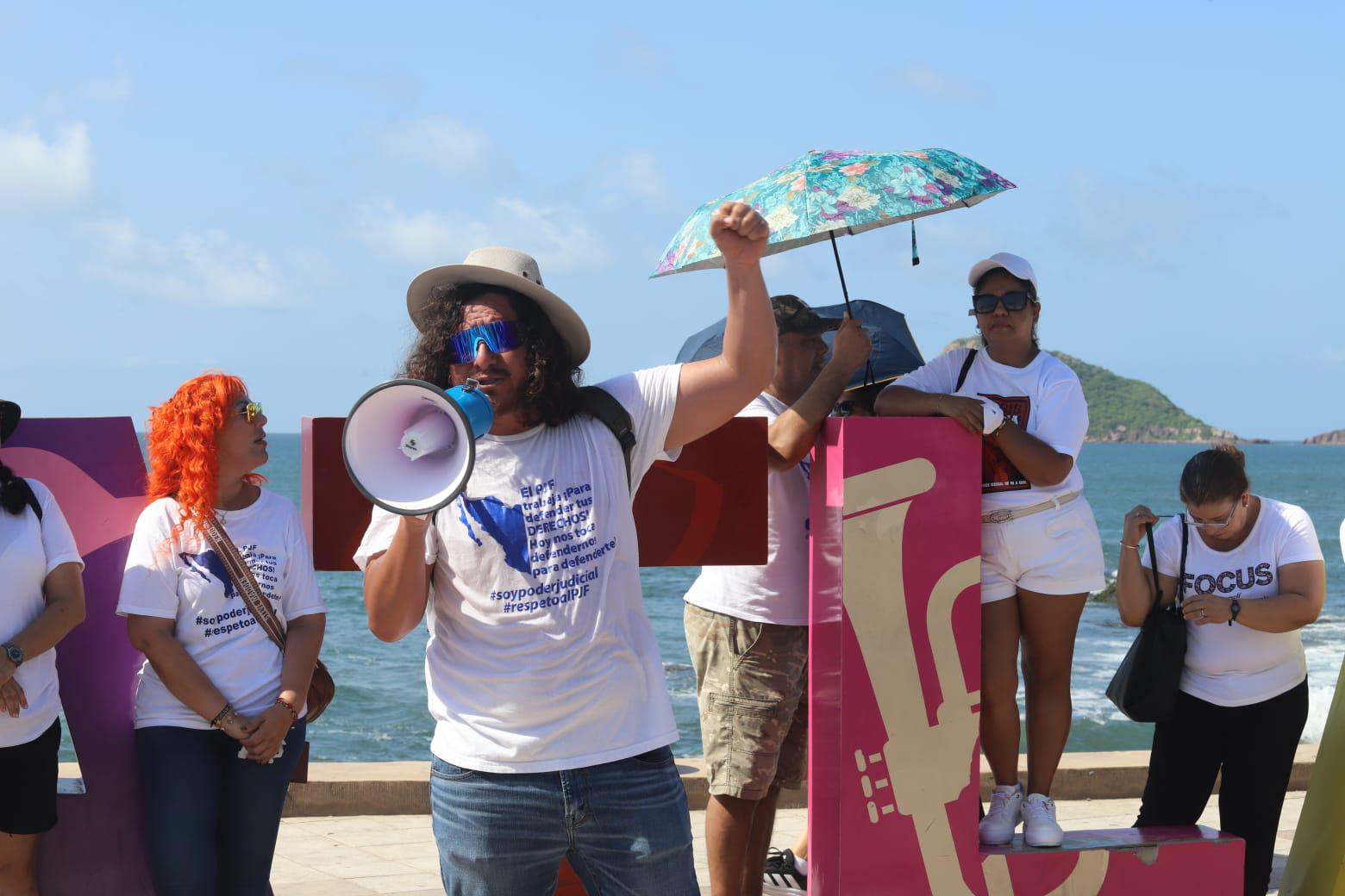 Decenas de trabajadores del Poder Judicial de la Federación marcharon por la avenida Camarón Sábalo, en el carril de norte a sur, en lo que ellos llamaron la manifestación por la libertad y la justicia.