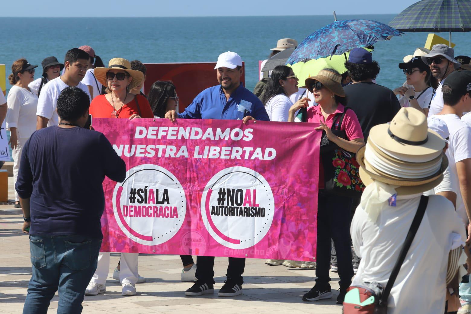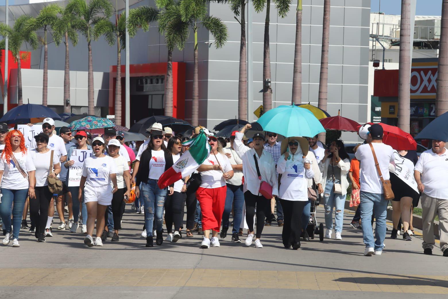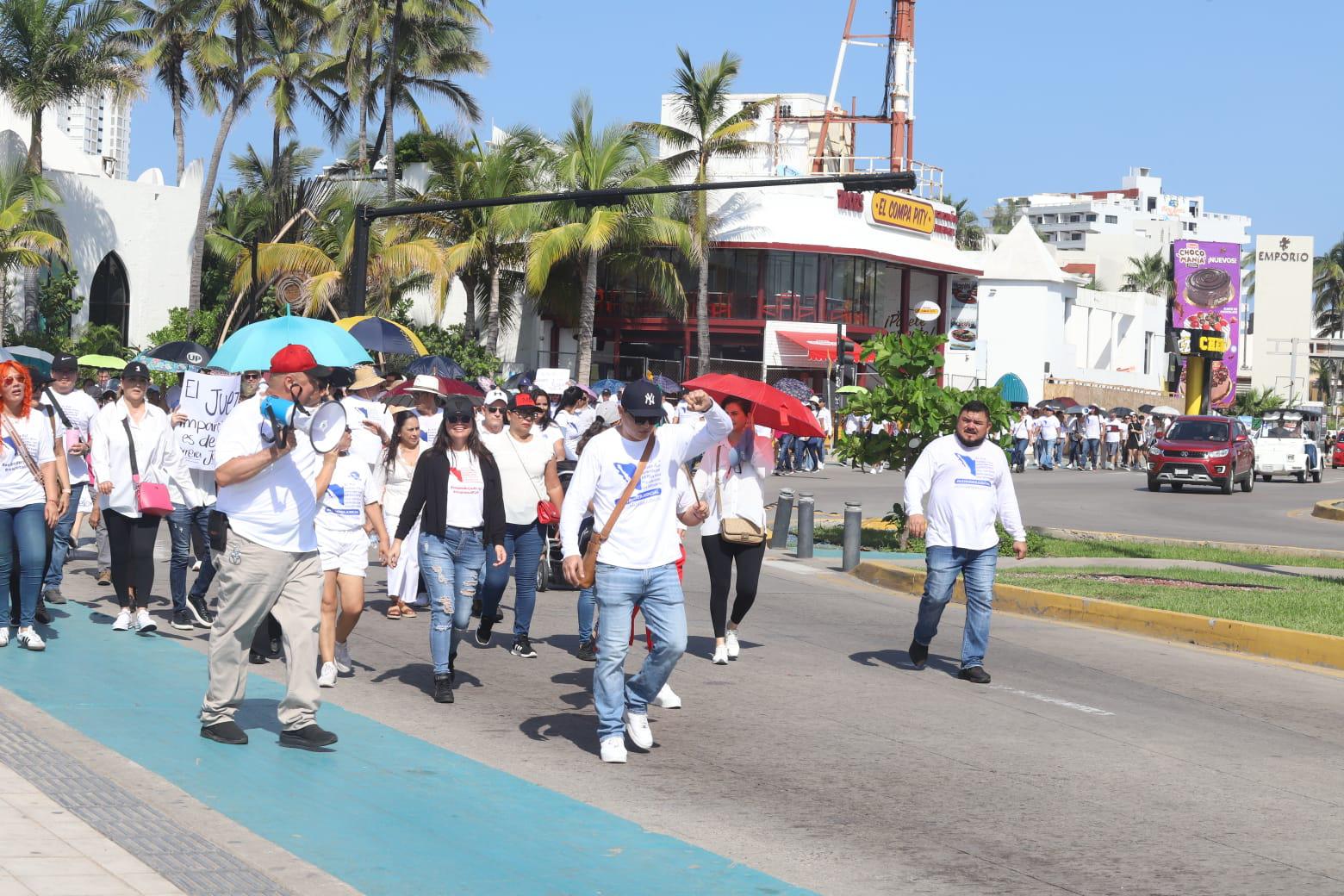 Los manifestantes recorrieron la avenida iniciando frente al hotel Viaggio hasta el parador fotográfico de las Letras de Mazatlán.