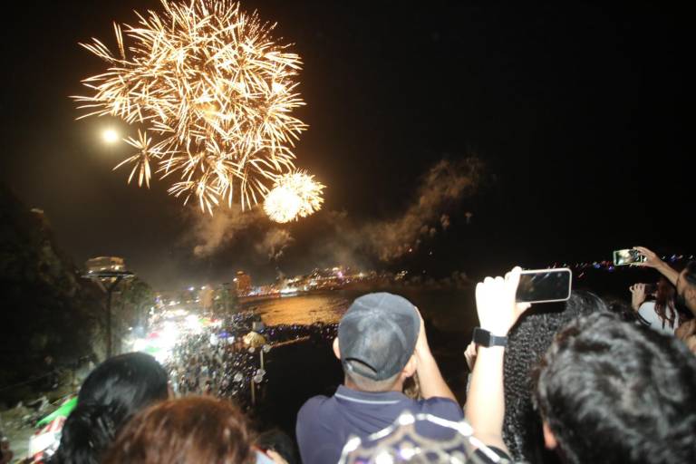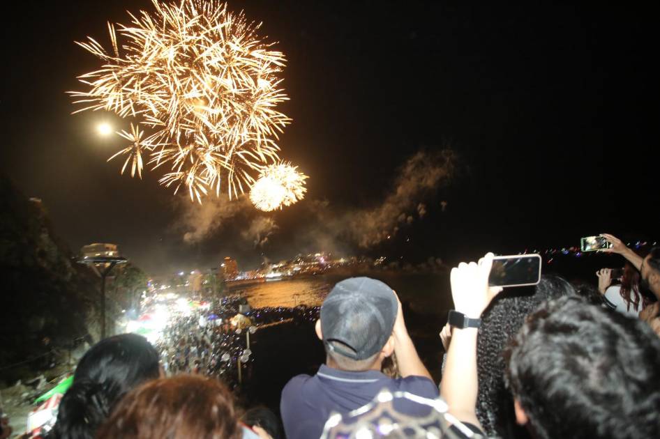 Aunque no abarrotaron el lugar como años anteriores, los asistentes disfrutaron de un espectáculo de 25 minutos de fuegos artificiales musicalizado a ritmo de melodía de la banda sinaloense como “Mi gusto es”, “Amor eterno”, “Ay mi Mazatlán” y cerrando con “El Sinaloense”, mientras las luces multicolores iluminaban la bahía de Olas Altas, uno de los lugares más representativos de la historia de Mazatlán.