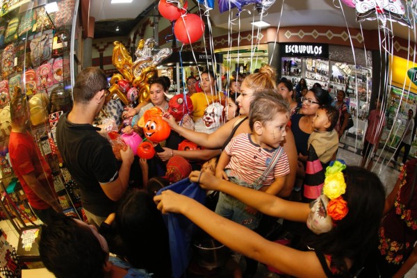 En el centro comercial la Gran Plaza, uno de los más visitados por locales y turistas, los infantes y otros no tanto piden dulces con el tradicional llamado "Queremos Halloween".