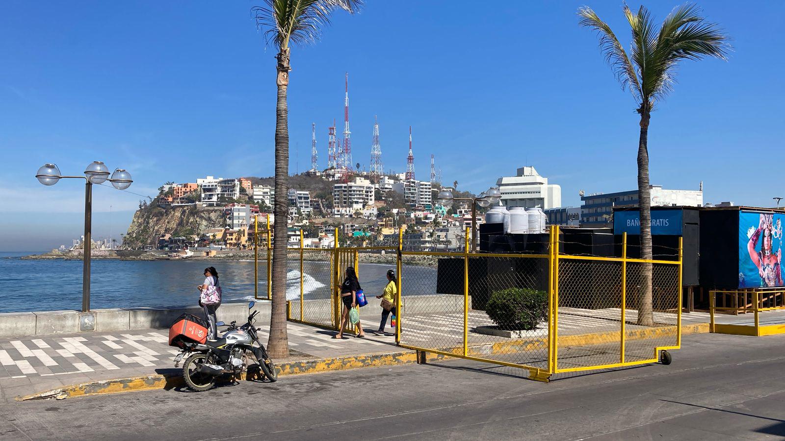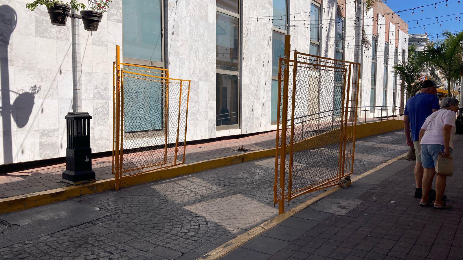 Otro de los detalles que llamó la atención de los mazatlecos son las rejas amarillas que sirven para cerrar algunos accesos, las cuales ya figuran en la zona de la Machado, pues cabe recordar que la Plazuela de ese lugar restringe sus accesos para que no se acumule mucha gente durante los días de más fiesta.