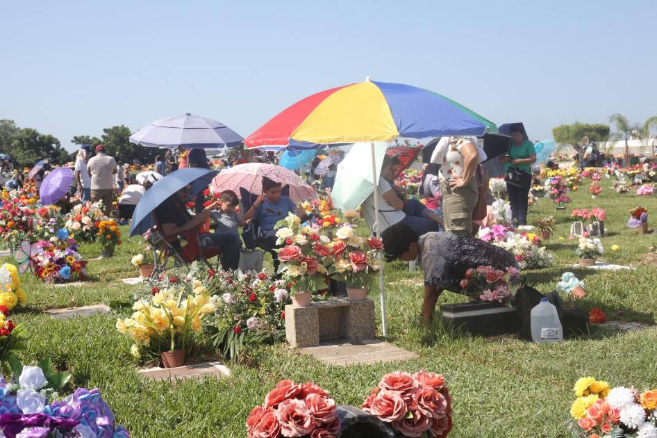 Bajo sombrillas y sombreros para protegerse del fuerte sol, algunos grupos se reunieron para rezar, compartir anécdotas o permanecer en silencio, en un momento de conexión espiritual que solo se repite el 2 de noviembre, el Día de las Madres y el Día del Padre.
