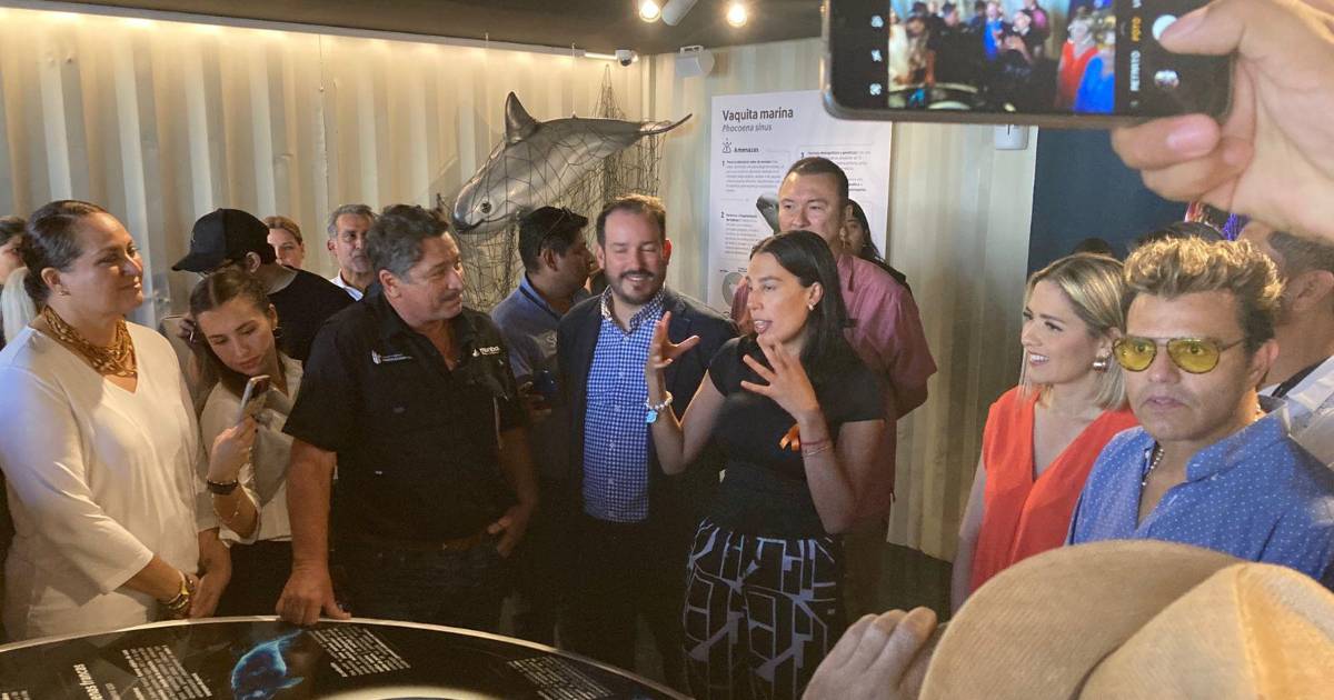 Durante su recorrido en el museo, a Josefina Rodríguez y sus acompañantes se le explicó acerca de la biología, comportamiento, ecología y conservación de ballenas y delfines, así como de las diferentes especies que conforman la familia de estos mamíferos acuáticos.