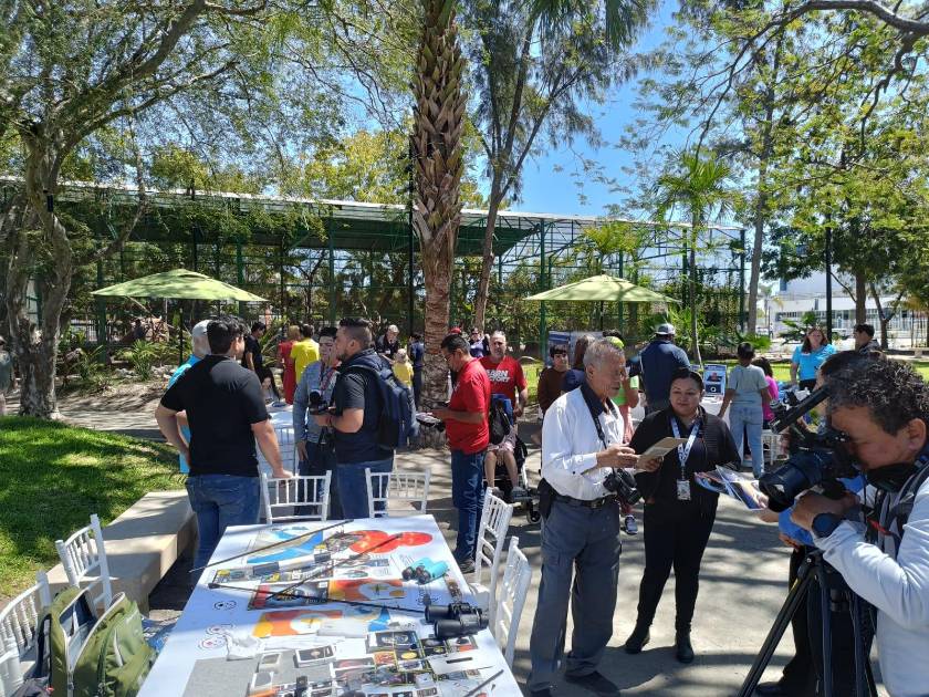“Cerramos el día lunes con broche de oro con el enfoque del Gran Acuario Mazatlán presentando talleres y vamos a estar presentando charlas previas a la exhibición de aves explicando que ocurre con los animales cuando hay eclipses, eso, lo estaremos presentando todos los días a partir de mañana previo a las exhibiciones de aves, y bueno, el día del eclipse, el lunes 8 vamos a acompañar a todos nuestros visitantes a observar de manera segura el eclipse en su totalidad”, señaló
