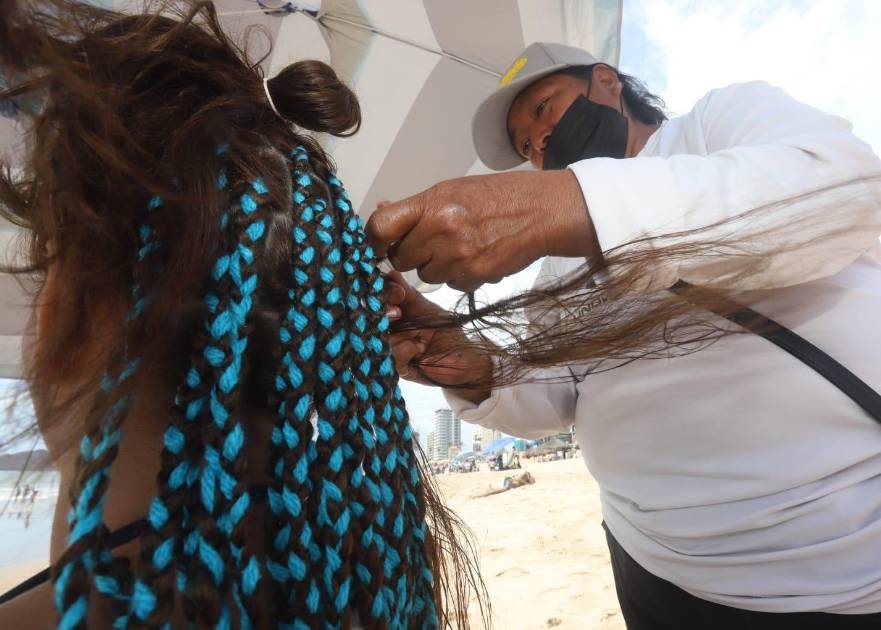 “Casi la mayoría que viene de fuera se hacen sus trencitas porque dicen que sin trenzas es como si no vinieran a Mazatlán”, comentó Magdalena, comerciante de playa.