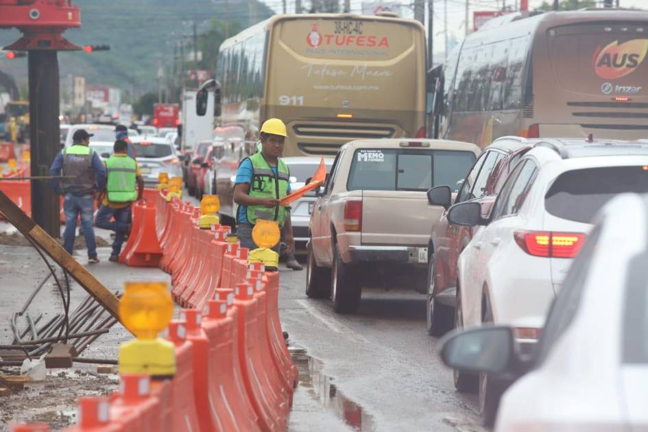 Obras en salida norte de Mazatlán generan caos vial y largas filas de tráfico