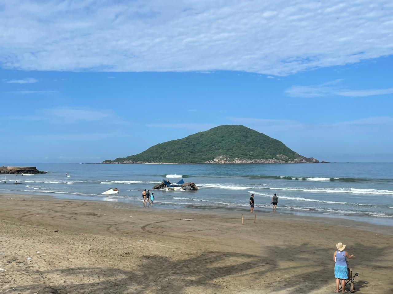 La embarcación turística se quedó sin propulsión por una falla mecánica y fue arrastrada por la corriente hasta encallar en la Playa Sábalo II, sus pasajeros descendieron sanos y salvos por sus propios medios.