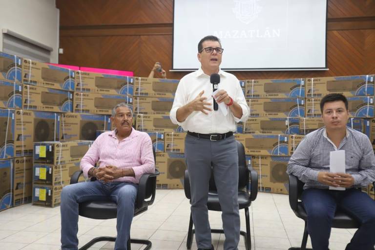 El Gobierno de Mazatlán entregó 36 minisplits a 20 escuelas por medio del programa “Pesos a Peso”, en un evento encabezado por el Alcalde Édgar González Zataráin.