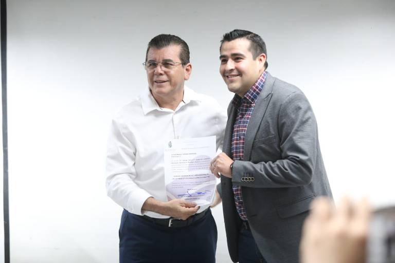 El Alcalde agradeció el trabajo de López Angulo, quien a su vez agradeció la oportunidad de trabajar en dicho cargo al que llegó después de ser Secretario de Obras Públicas del Gobierno del Estado en la administración de Quirino Ordaz Coppel.