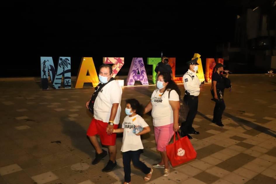 MAZATLÁN._ De las 8:00 de la noche del sábado hasta las 6:00 de la mañana de este domingo, policías municipales estuvieron invitando a turistas a retirarse de las letras de Mazatlán ubicadas a un costado del Monumento a la Familia, para evitar las aglomeraciones que cada noche se observan en el lugar.