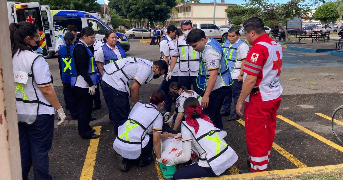 Cerca de 600 alumnos de cuarto año de la Facultad de Enfermería de la Universidad Autónoma de Sinaloa en Mazatlán participaron en un simulacro con hipótesis de incendio en un laboratorio que dejó 16 personas “lesionadas” y dos “muertos”, por lo que movilizó a elementos de diferentes agrupaciones de rescate.