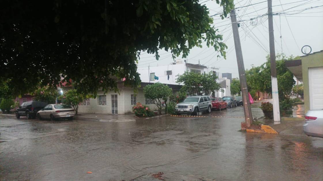 Fue cerca de las 5:00 horas cuando las fuertes lluvias acompañadas de tormenta eléctrica comenzaron a registrarse en esta ciudad, por lo que instantes después el agua corrió por las vialidades inundando las partes bajas y desbordó arroyos en algunos tramos.